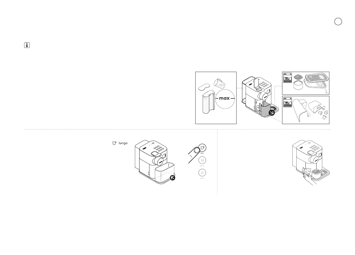 ❷ 2. Letakkan wadah di bawah outlet kopi dan tekan tombol (