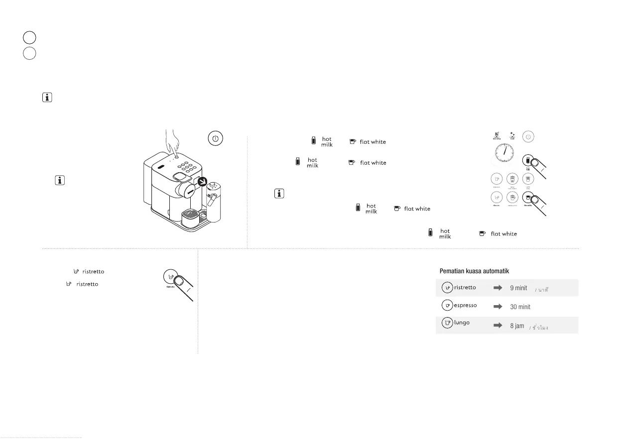 ❸ 5. Tekan ( ). ❹ 6. Sekarang, dalam masa 30 saat, anda boleh menukar pematian kuasa