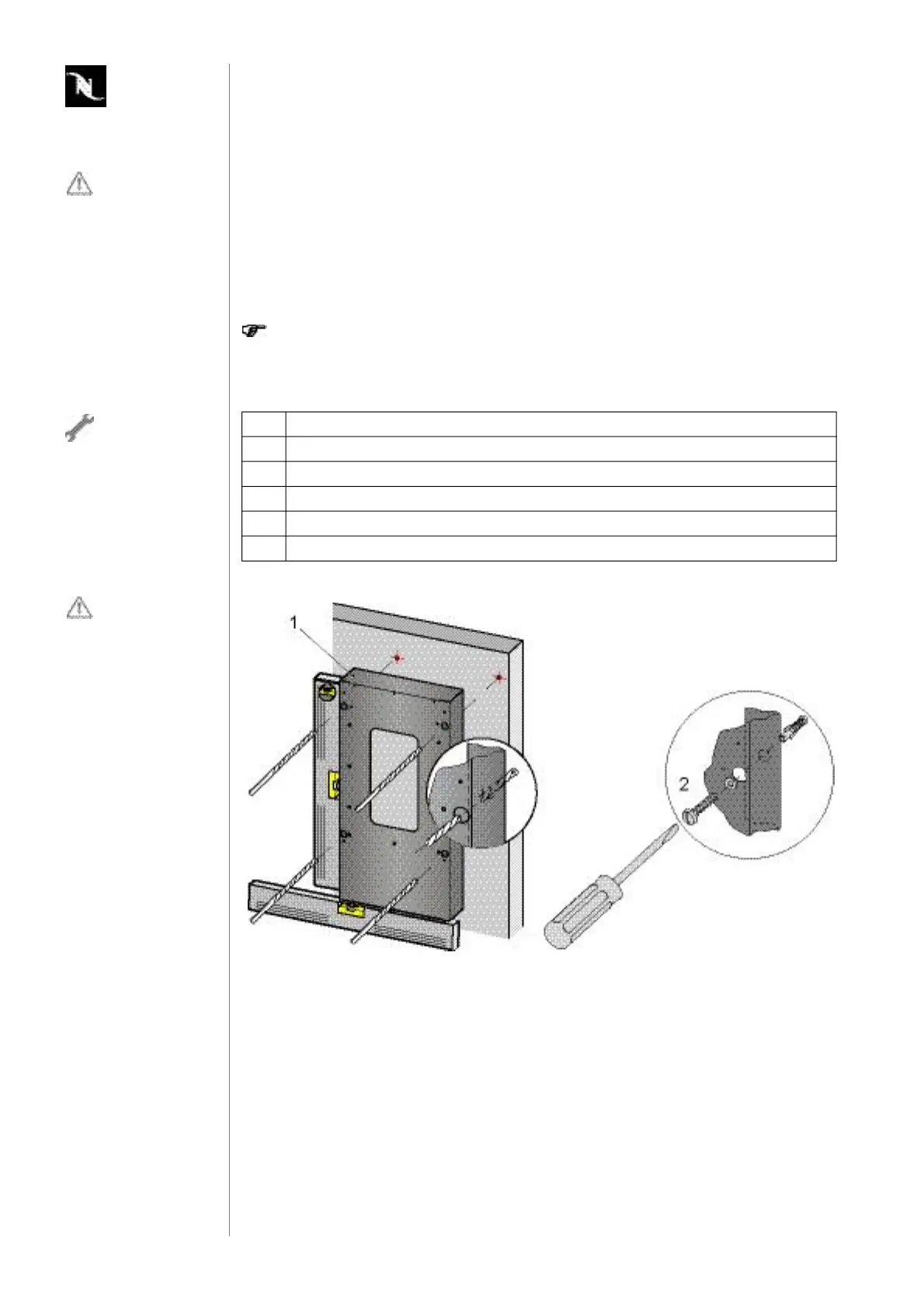 2. Positionsupport(1)onthewallandcheckthatitisinlevel.