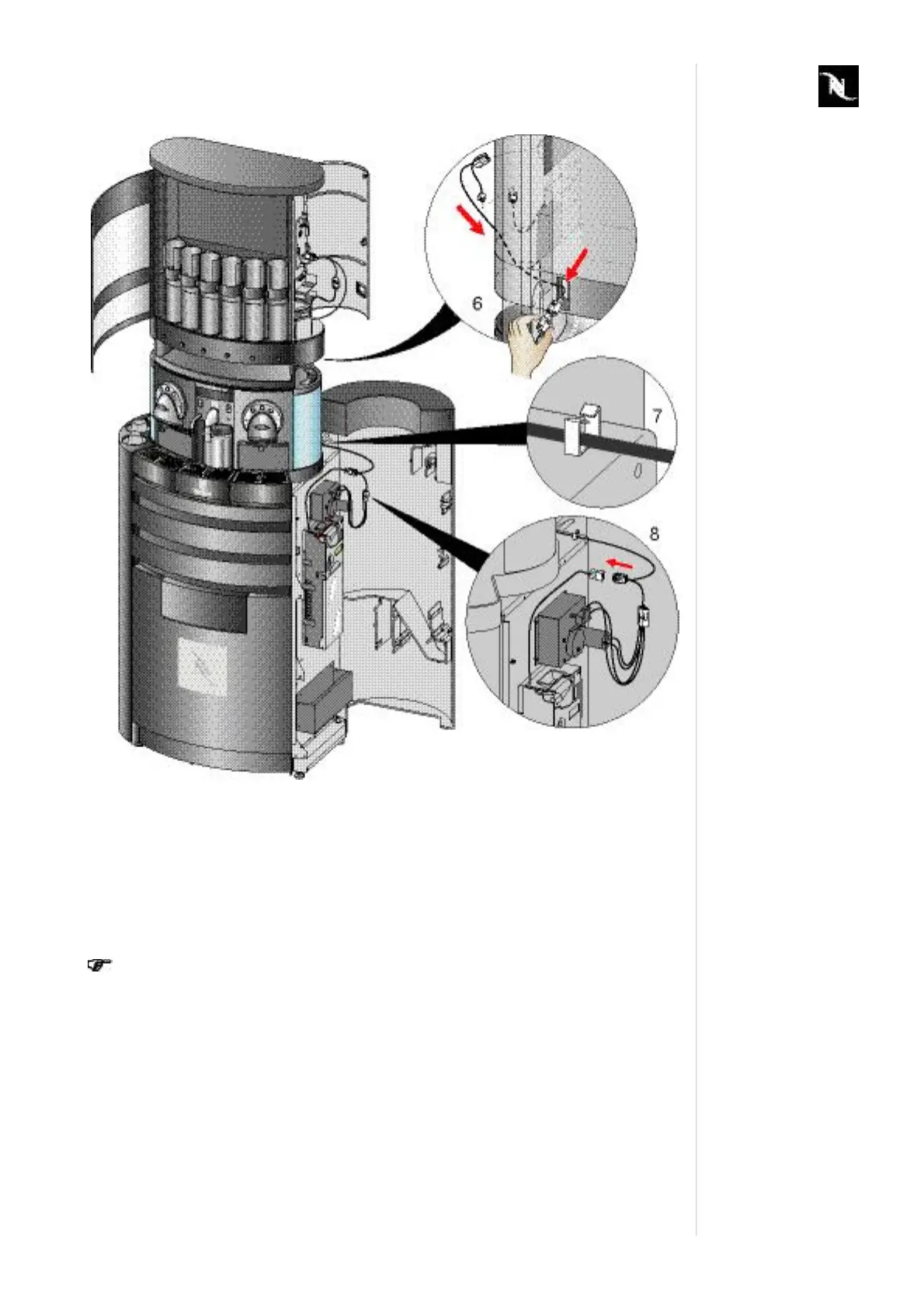 10. Connectsplittedcablesattherearsideoftheautomaticcapsuledispenser(6).
