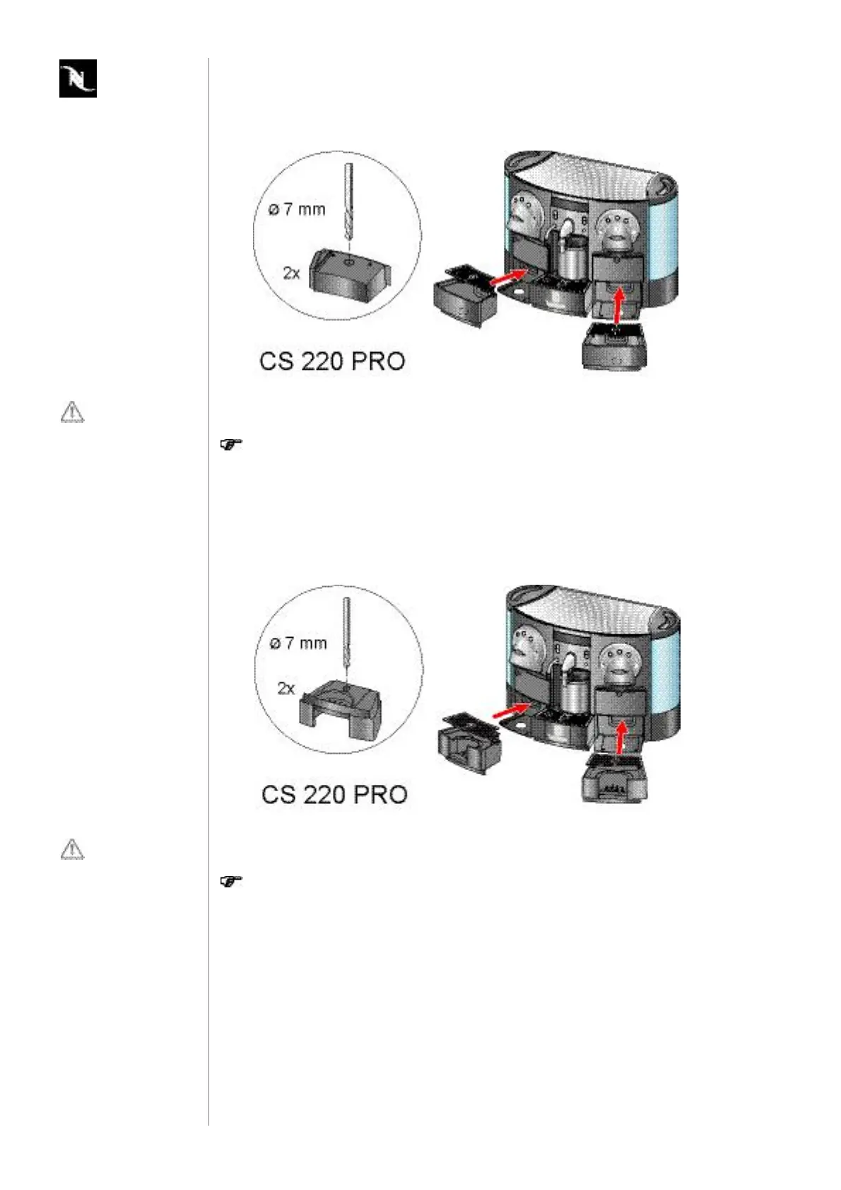 1. Drillahole(7mmdia)intheleftandrightdriptrayoftheCS220PROcoffee