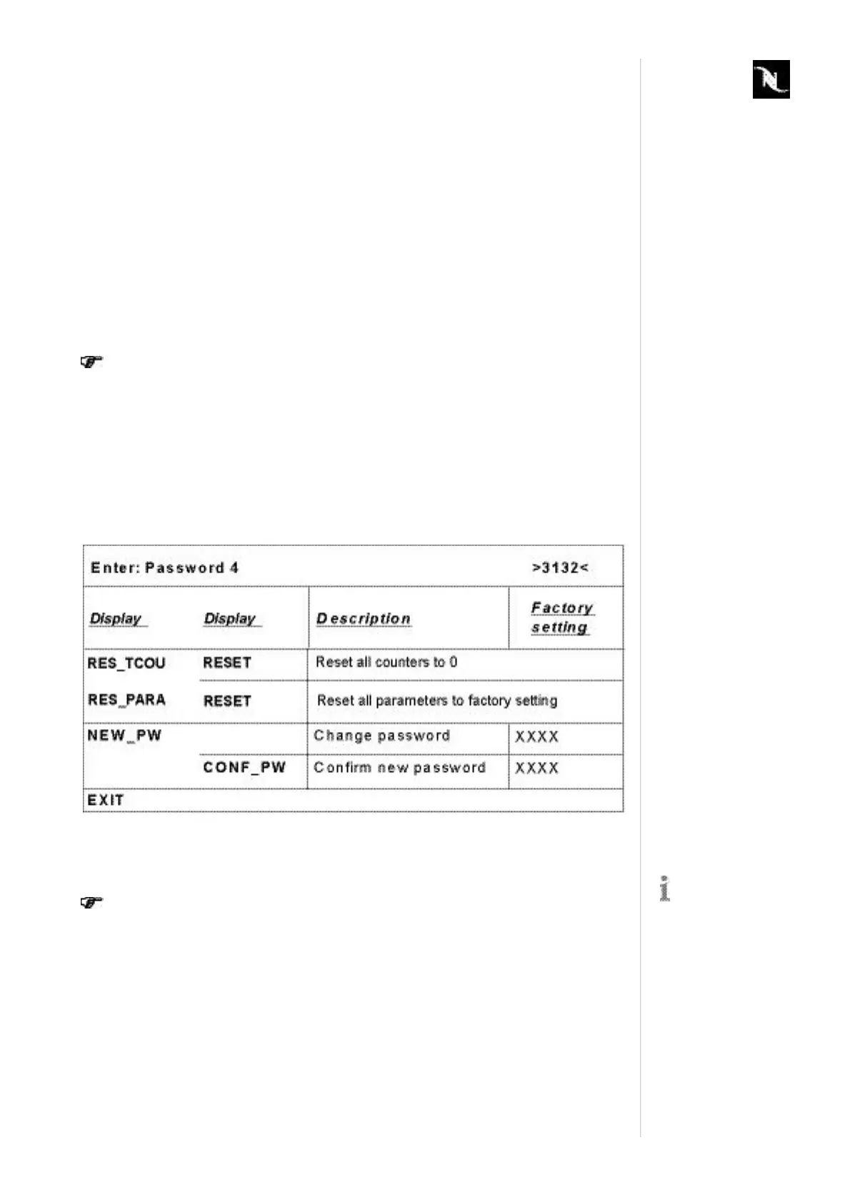 5.8 Menu4counter/parameterreset