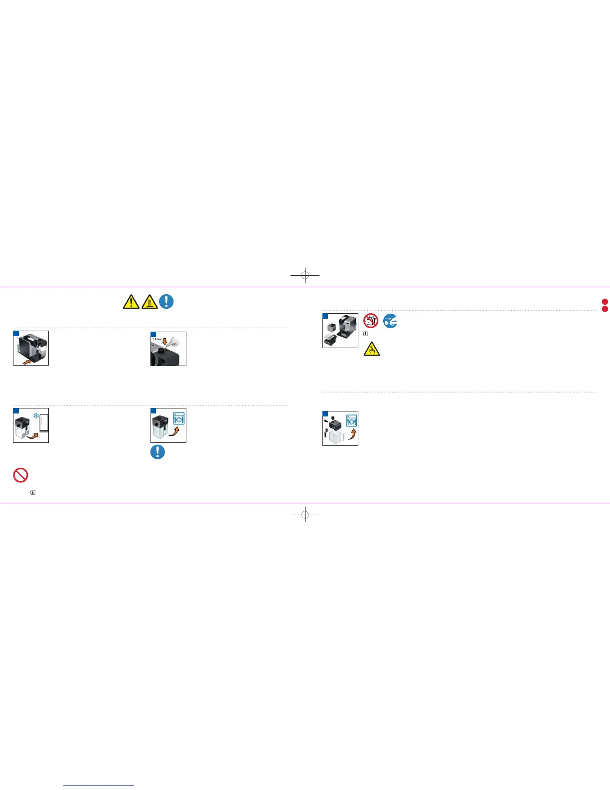 Remove the drip tray, capsule container and water tank. Empty and rinse. Both left and right grid can be removed for easy cleaning. Clean the co ee outlet