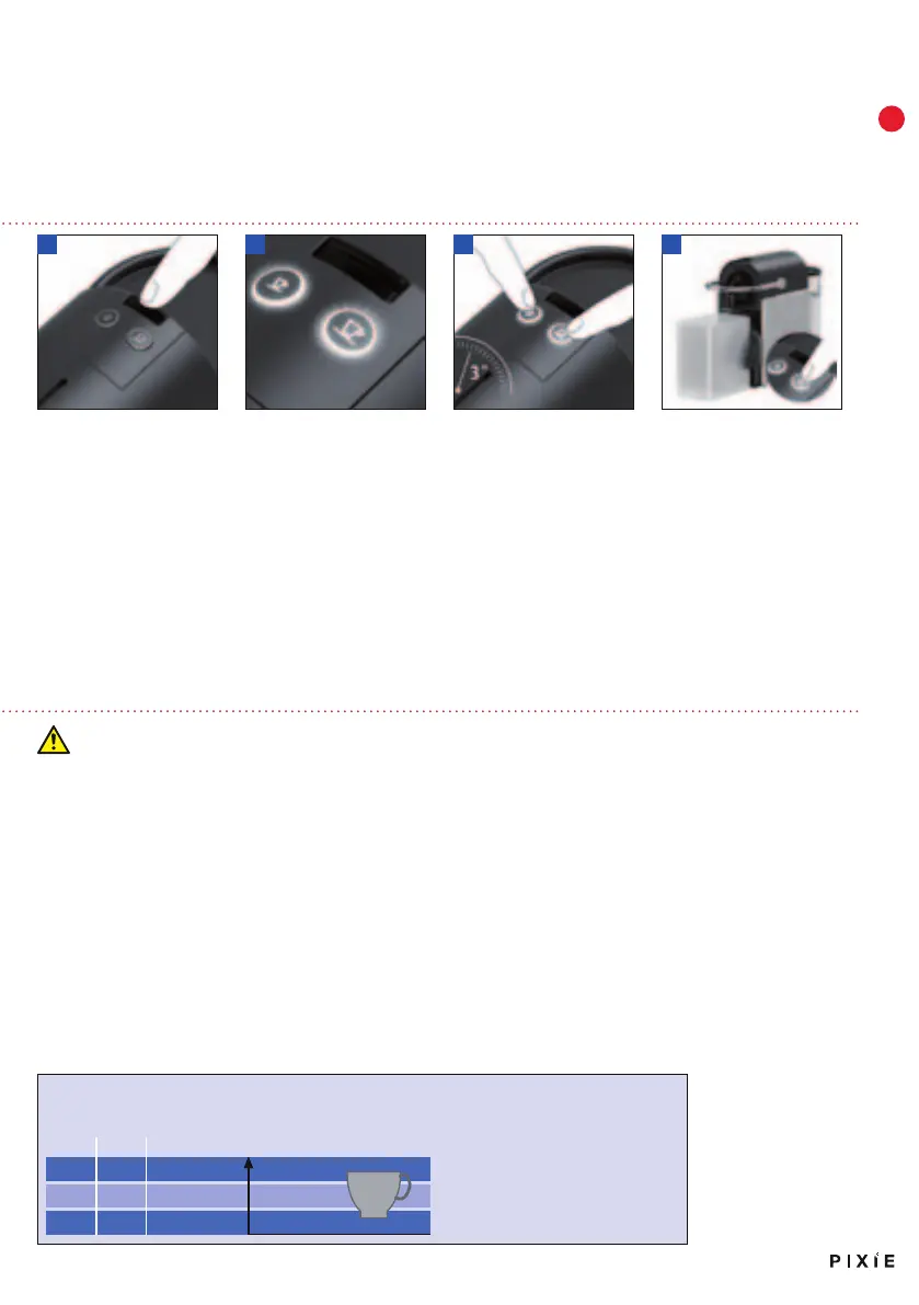 ontkalkingssets die verkrijgbaar zijn via de Nespresso Club, anders riskeert u beschadiging van uw machine. In de onderstaande tabel staat aan-