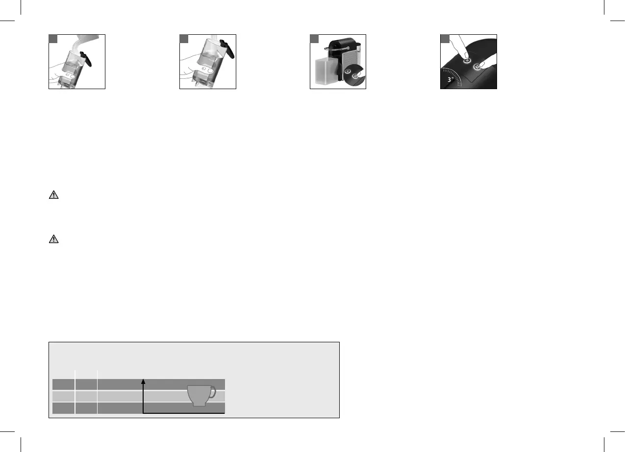 La solución descalcicante puede ser nociva. Evite el contacto con los ojos, la piel y otras supercies. No utilice otros productos (como vinagre) ya que podría afectar el sabor del café. La siguiente tabla le