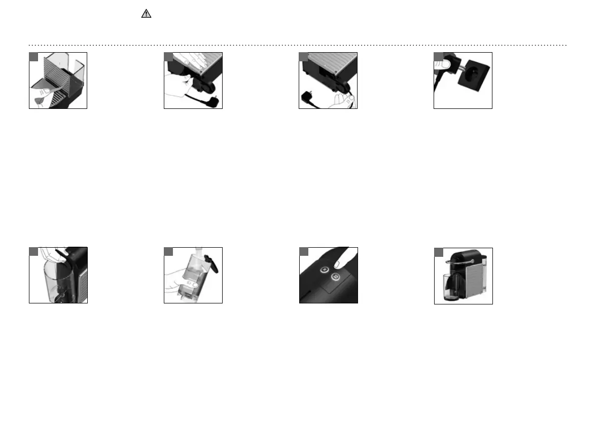 Συνδέστε το φις της μηχανής στην πρίζα.Αφαιρέστε το δοχείο νερού και το δοχείο