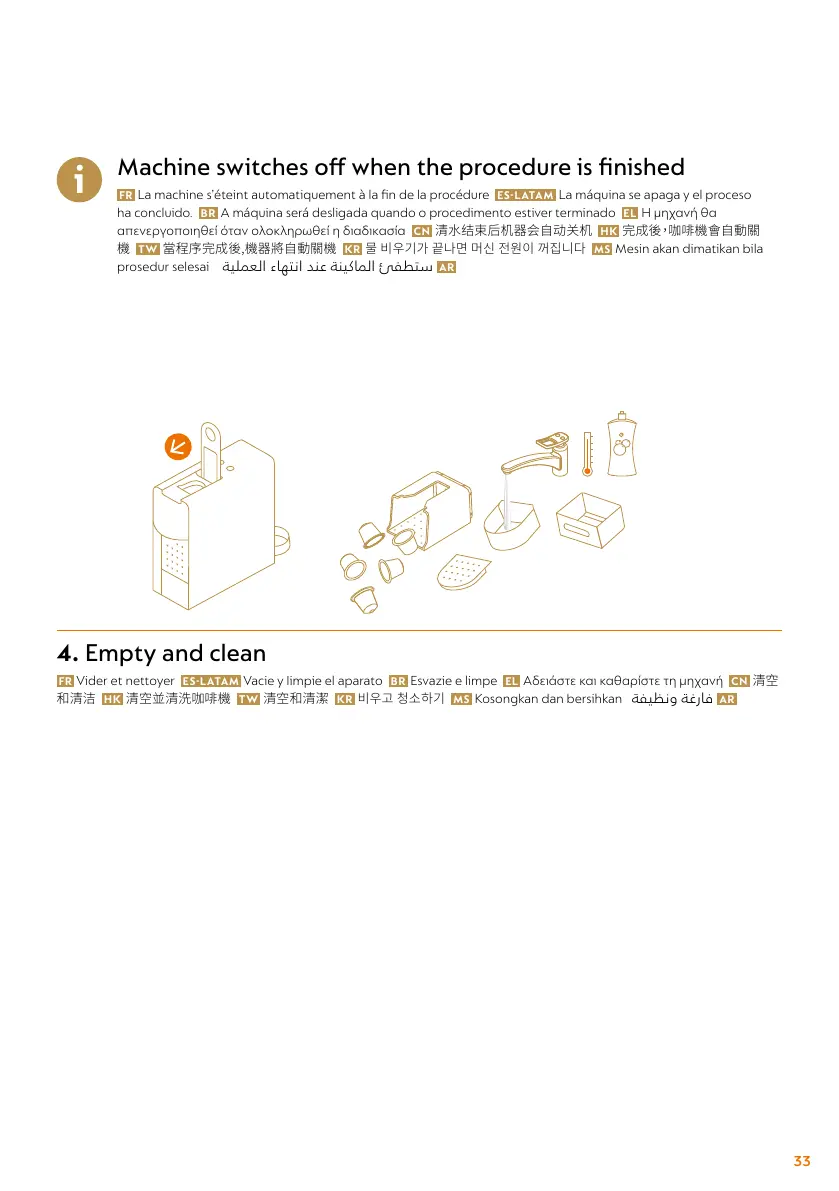 FR Vider et neoyer ESLATAM Vacie y limpie el aparato BR Esvazie e limpe EL Αδειάστε και καθαρίστε τη ηχανή CN
