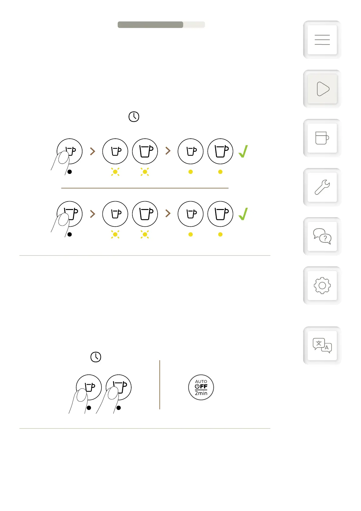 Kaemaskinen varmes opp på ca. 30 sekunder. Lysene vil blinke