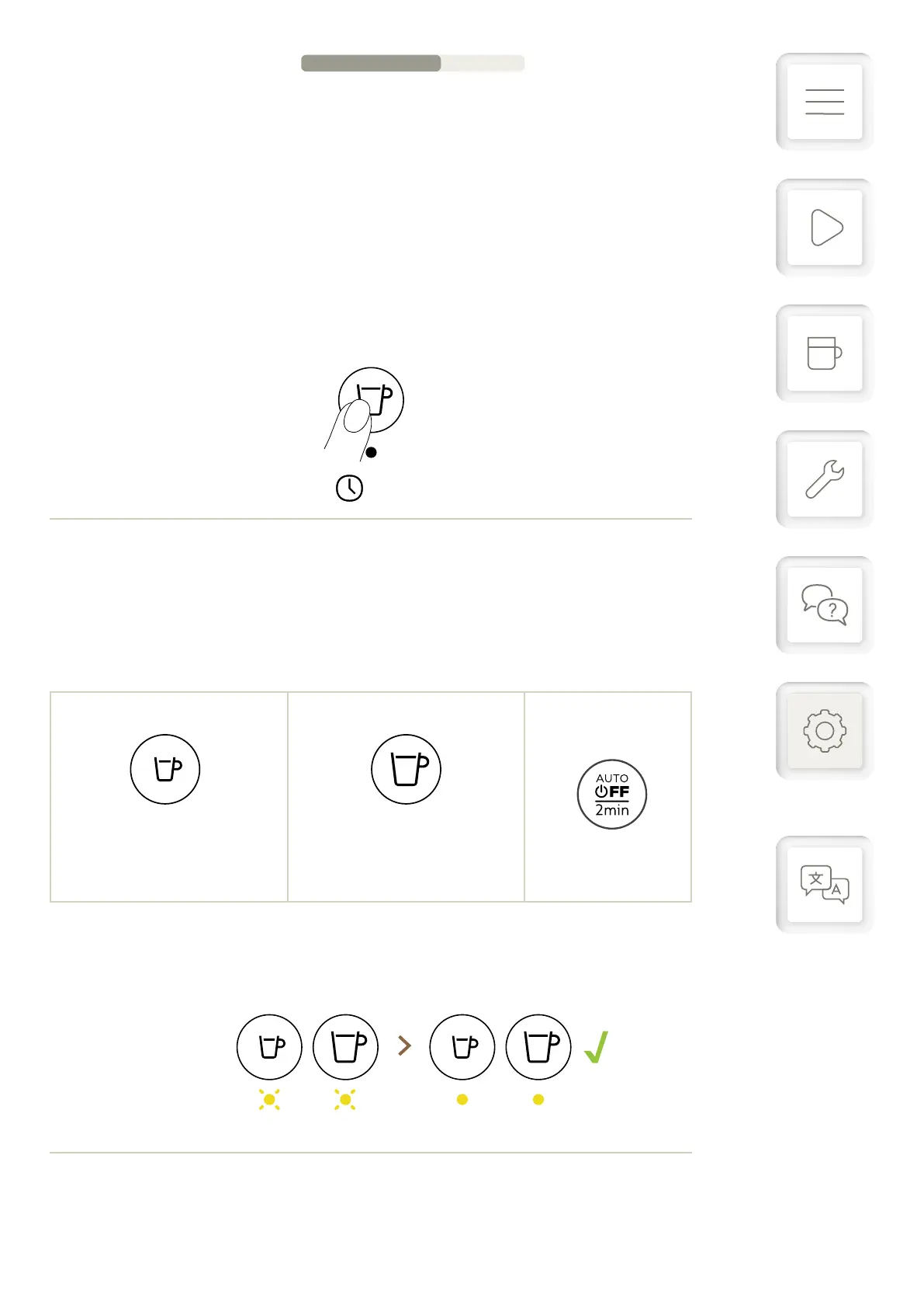01. Når kaemaskinen er slå av, trykk og hold Lungo-knappen
