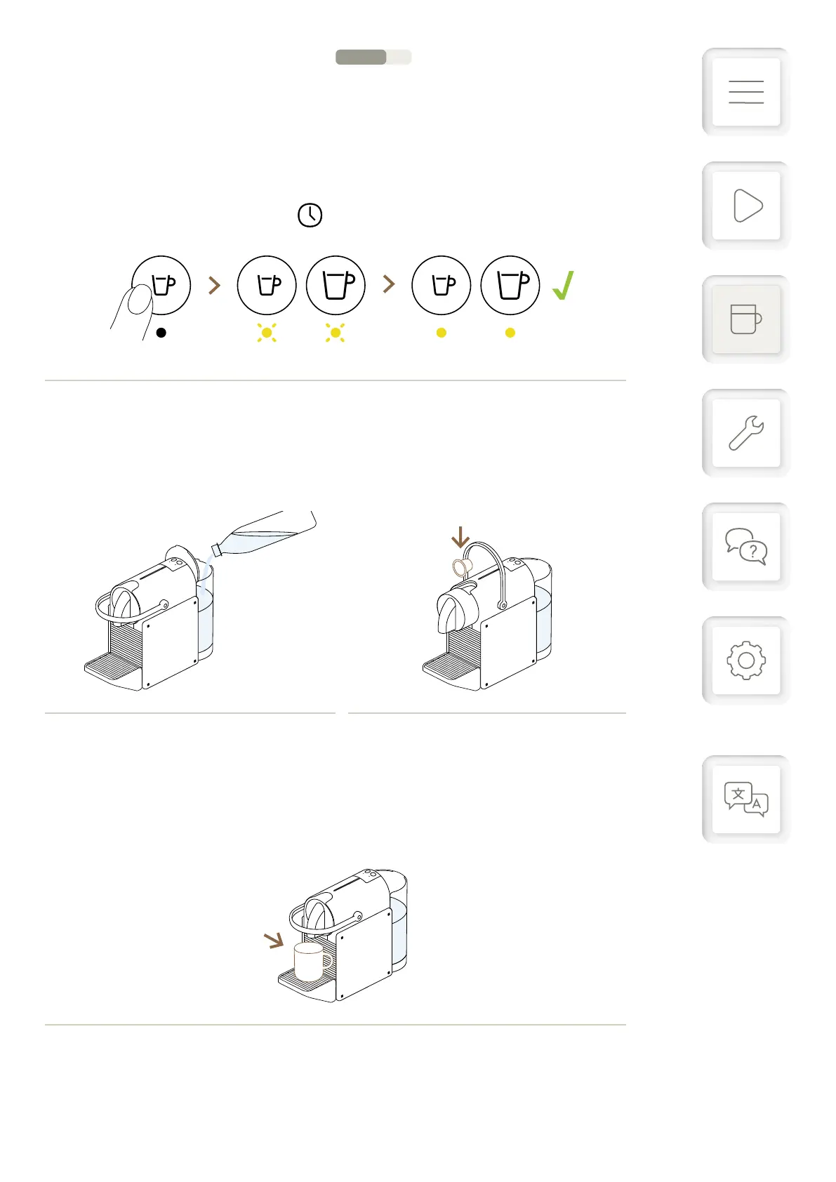 Maskinen kommer värmas upp inom ca 30 sekunder. Ljus