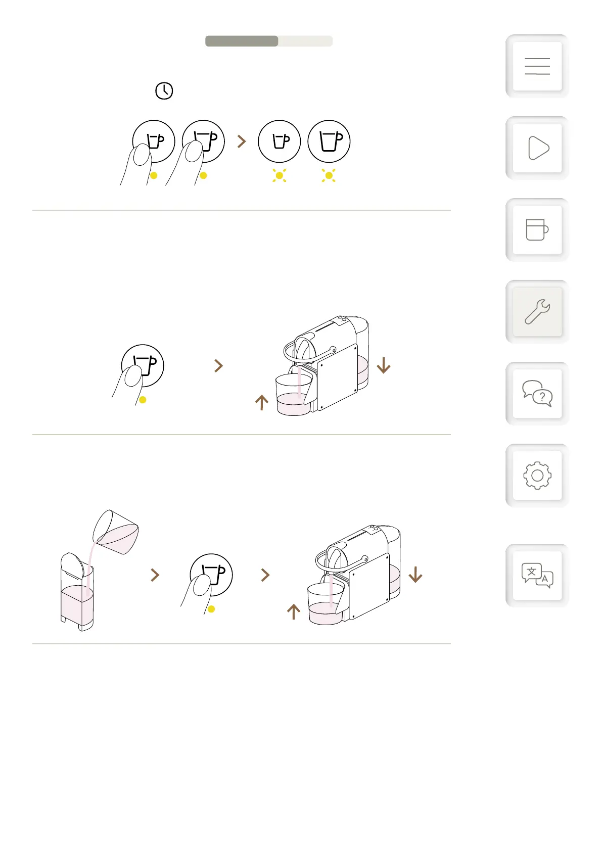 trycka på Lungo-kanppen och vänta tills vaentanken är tom.