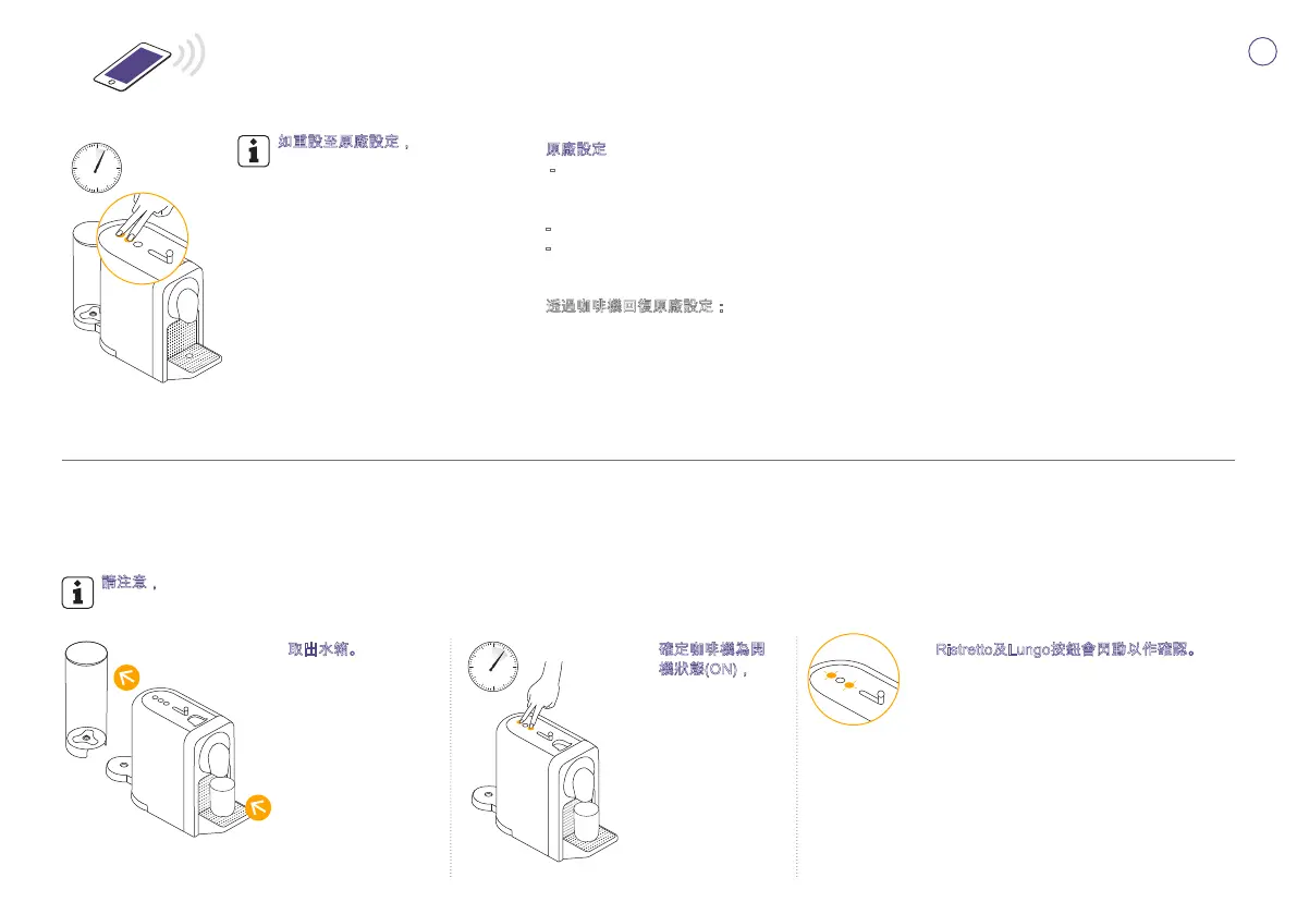 透過咖啡機回復原廠設定: