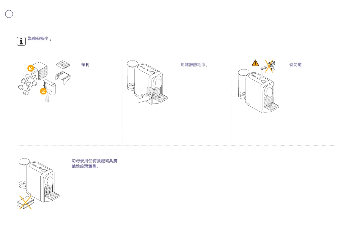 為確保衛生,強烈建議每日均清空咖啡機和清理已用粉囊容器。