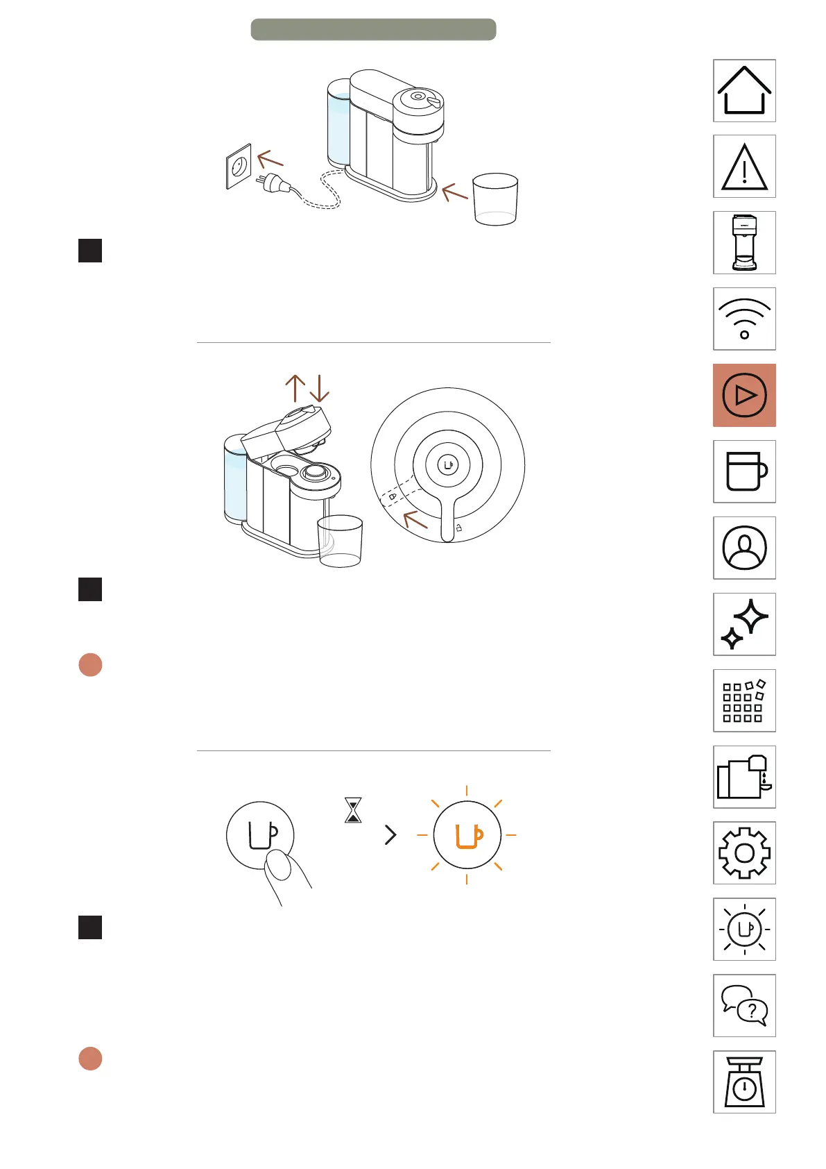 environ 30 secondes. Lorsque le voyant devient fixe, la machine est