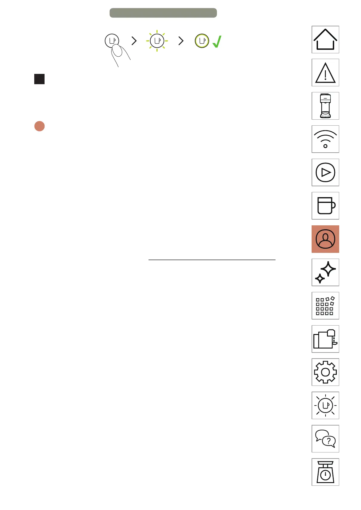 preparación antes; presione una vez el botón de café y espere hasta que