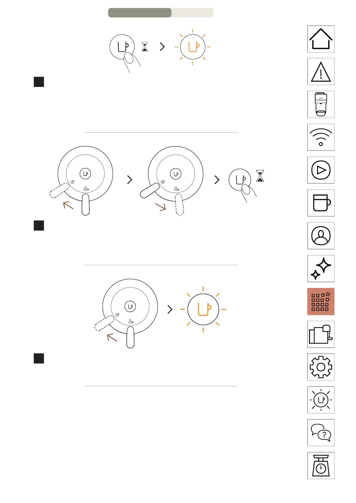 長按咖啡按鍵至少7秒鐘或直到指示燈熄滅 接著橙色指