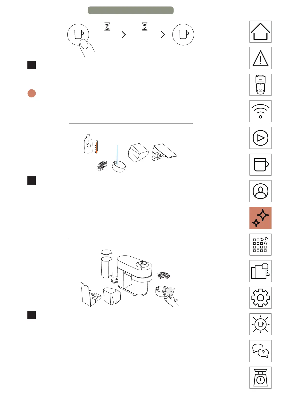 用热水和温和无味的洗涤剂清洗废弃粉囊盒、杯托和滴水