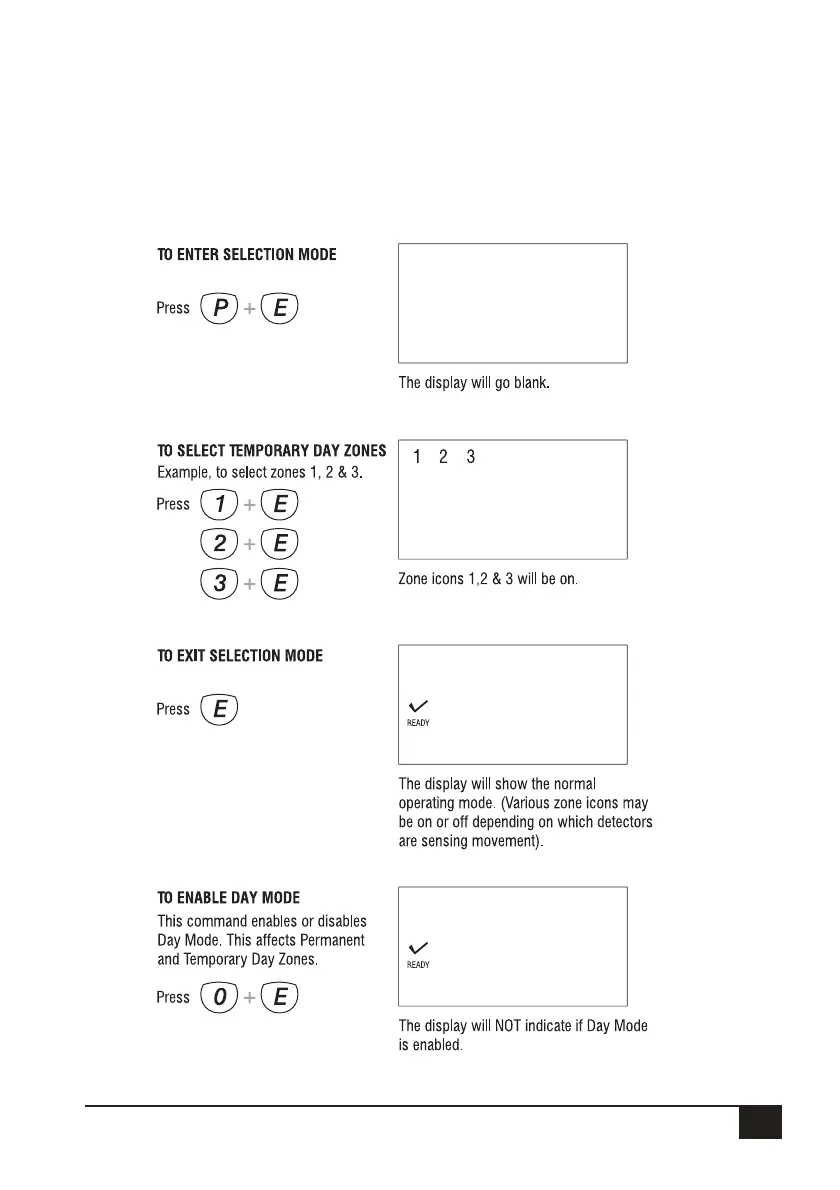 Note that Permanent Day Zones which have been programmed by the installer cannot be deselected