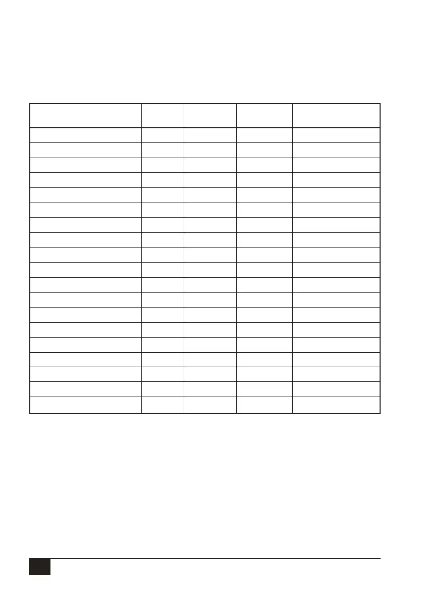PROGRAMMING OPTIONS TABLE