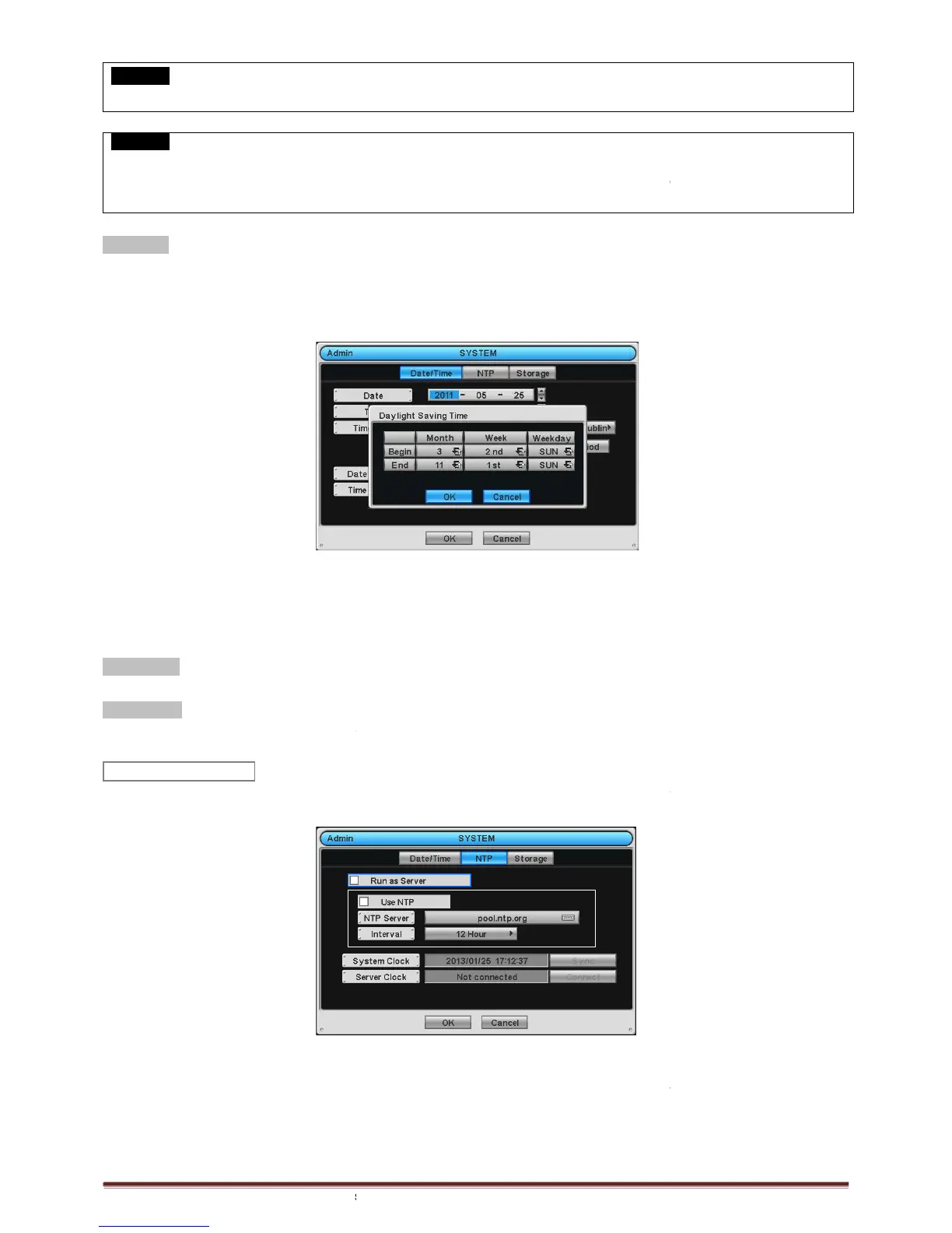 Connect to Internet to synchronize DVR clock with Network Time Server’s clock.