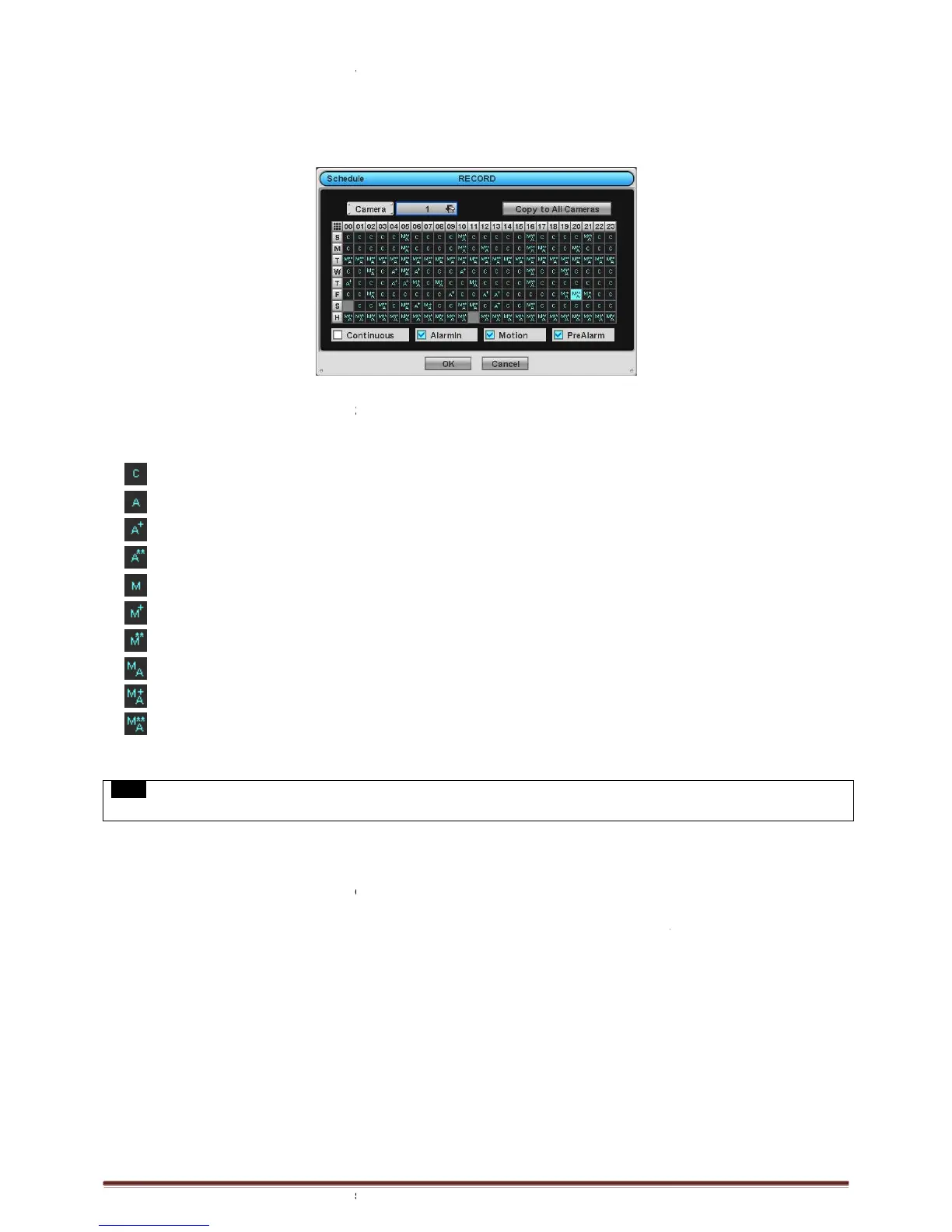 The Pre Alarm will allow user to check, during playback, the previously recorded video before the record start time.