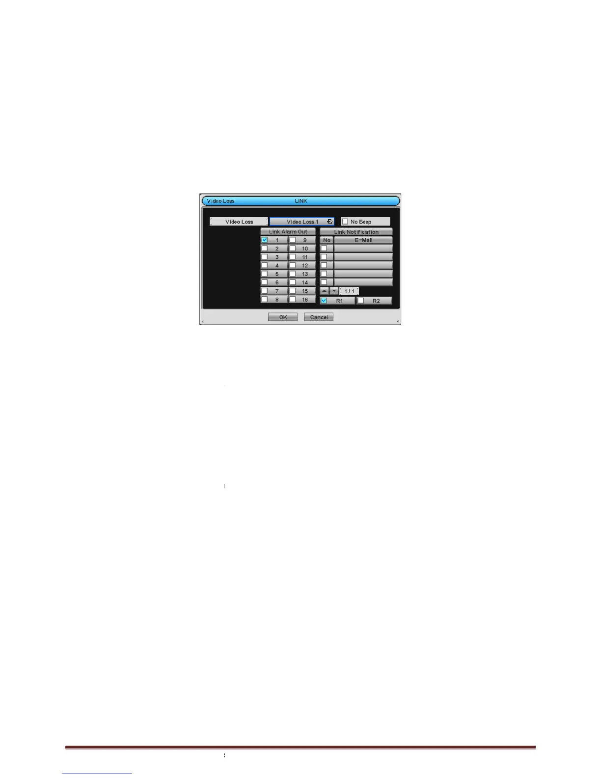 Select alarm outputs to be worked when Video Loss 1 is on. Please check