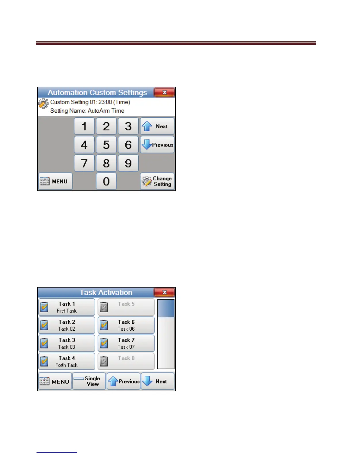 Ness M1 Navigator - Automation Custom Settings; Task Activation