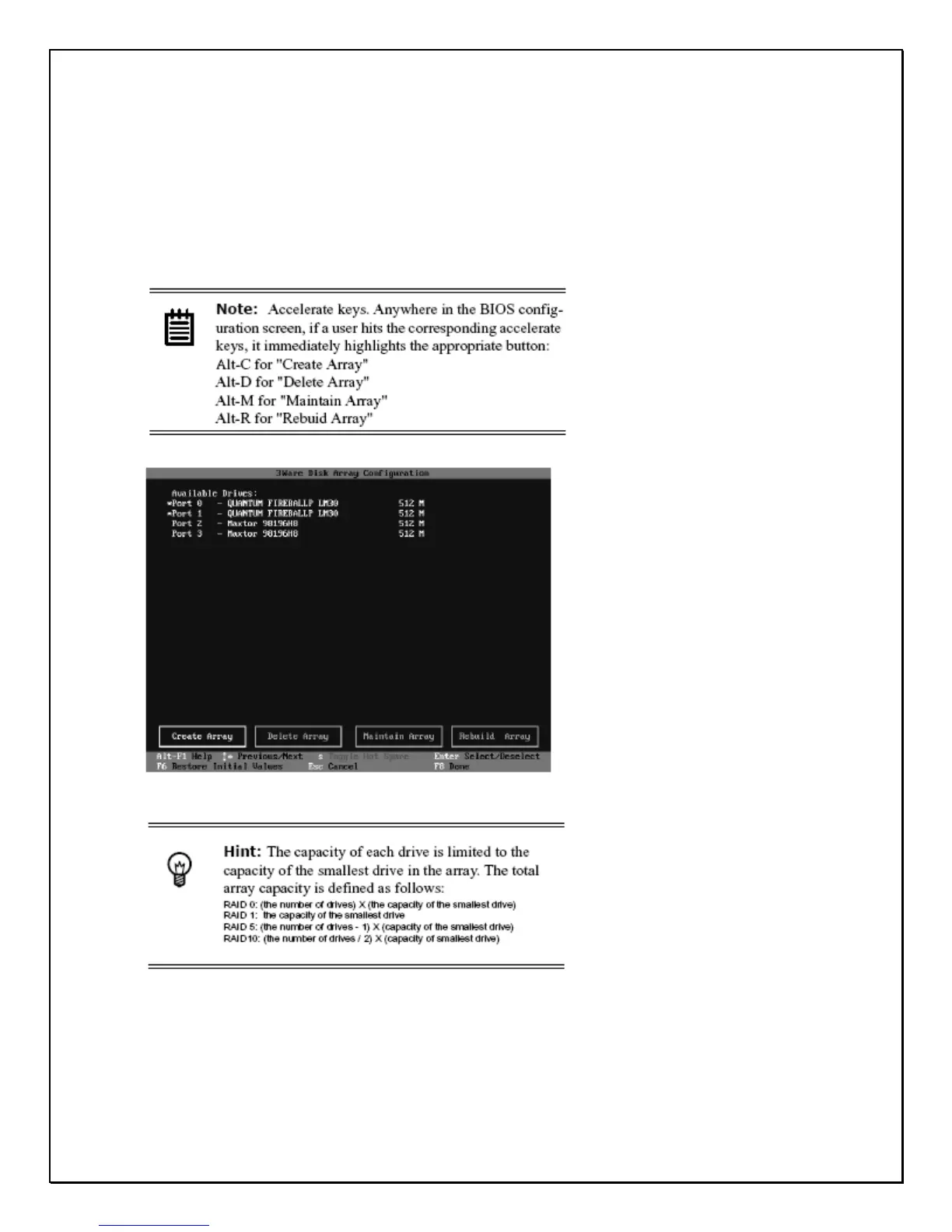 To create an array, first select the drives to be included by navigating the cursor