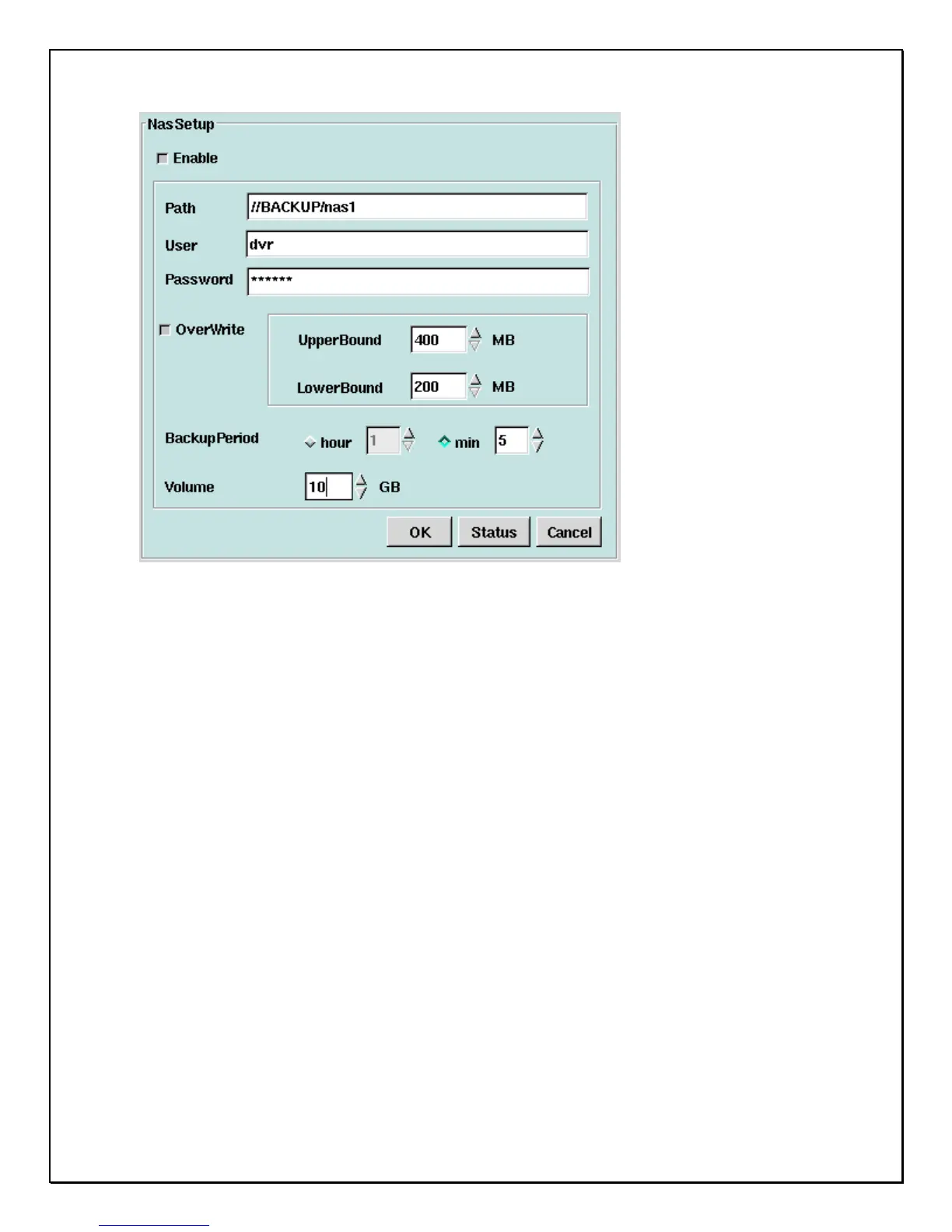 9. Backup Period: DVR will not continuously archive data to NAS; the ‘’ Backup