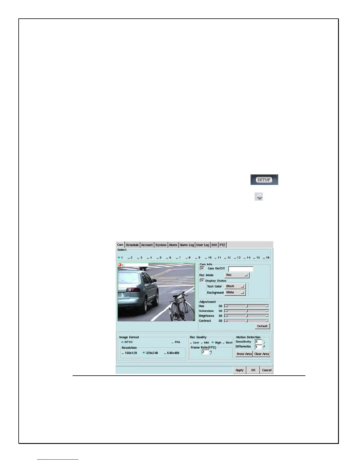 DVR, you need to enter “Setup” to configure each individual camera. Here users can set