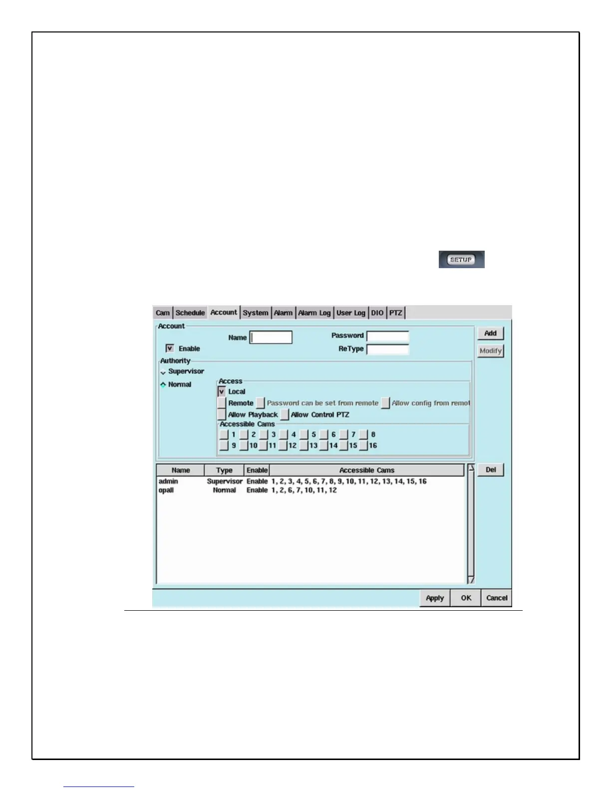 add users to the system. There are two types of users, one with Supervisory (or