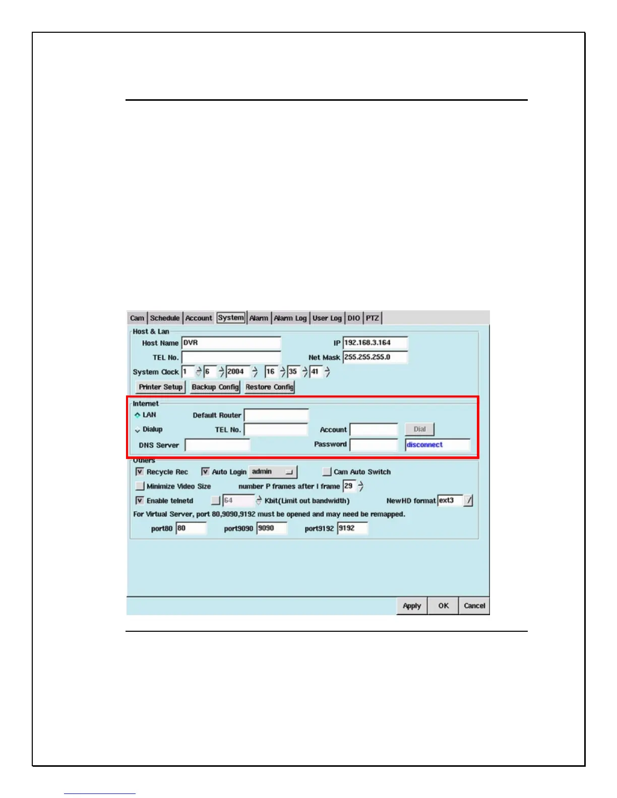 Windows users can also dialup (using PPP) to DVR for remote monitoring.