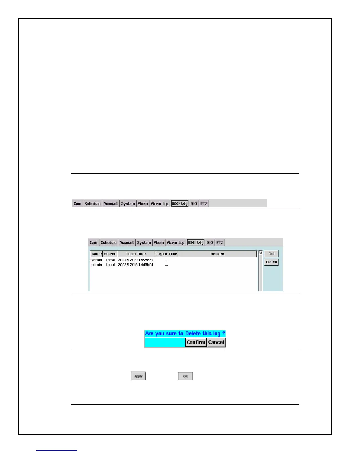 The User Log provides the administrator of the DVR to monitor all users that have
