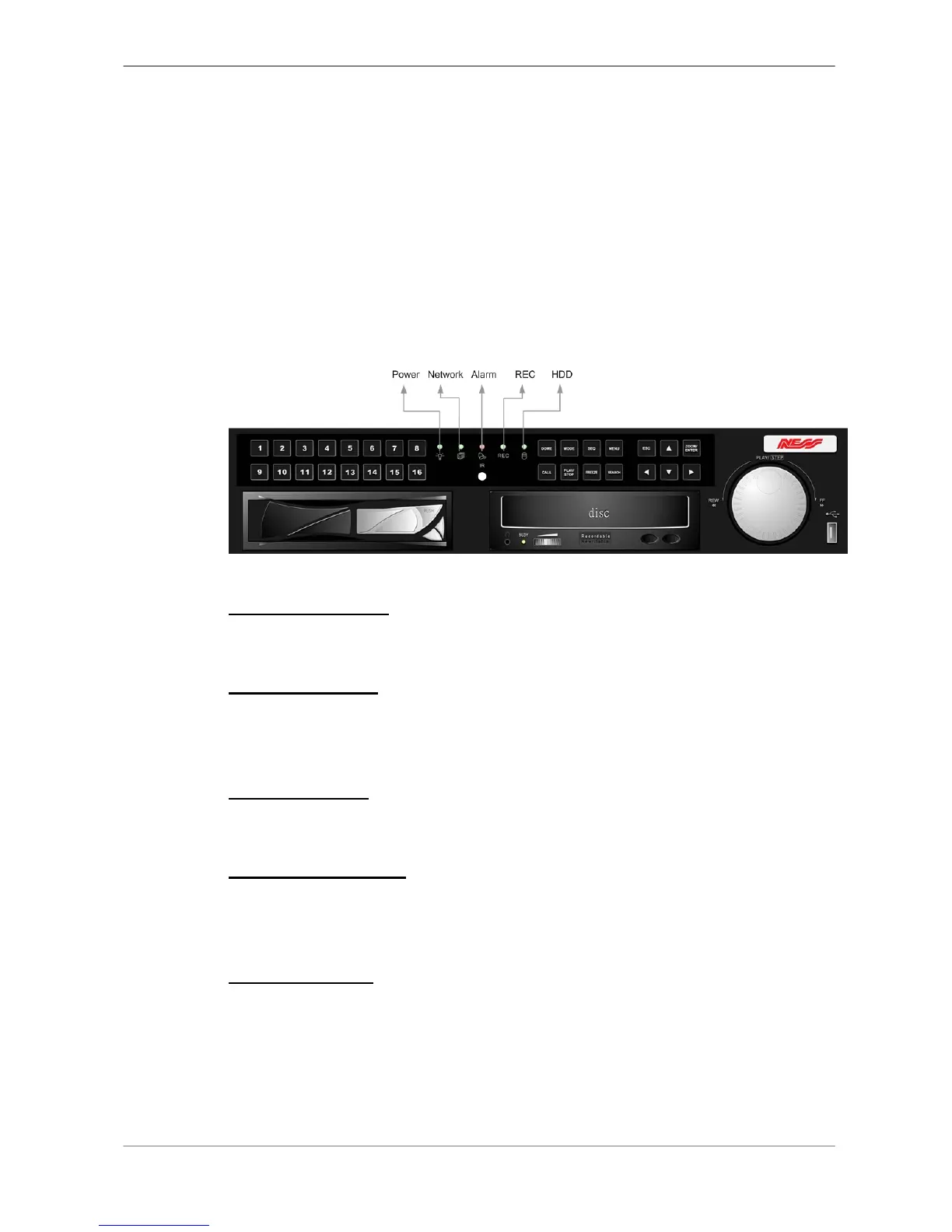 The Full-featured MPEG-4 DVR LEDs on the front panel are described as