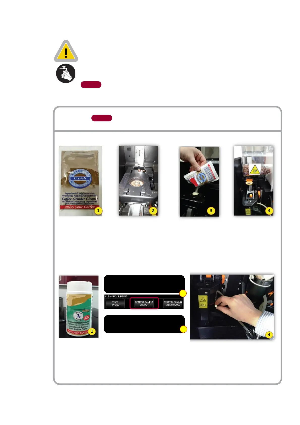 WASH HANDS THOROUGHLY WITH WATER AND SOAP BEFORE HANDLING THE MACHINE AND THE