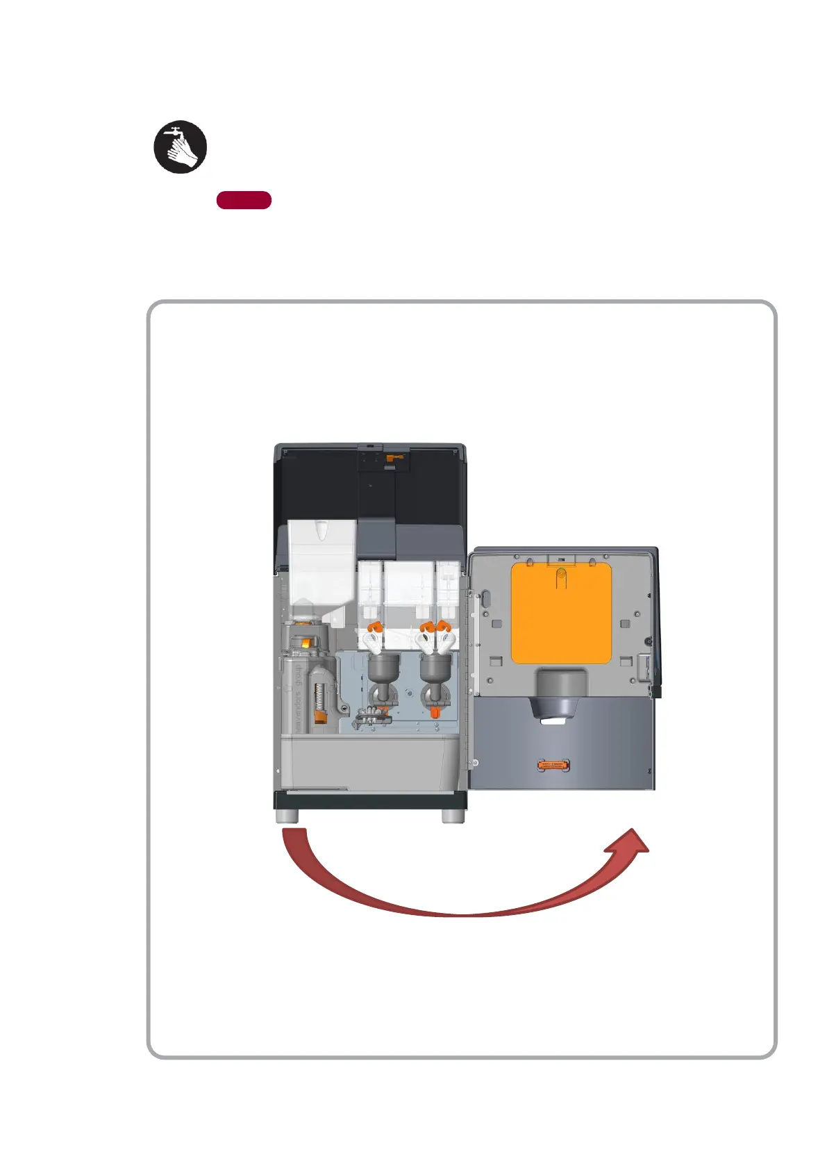 WASH HANDS THOROUGHLY WITH WATER AND SOAP BEFORE HANDLING THE MACHINE