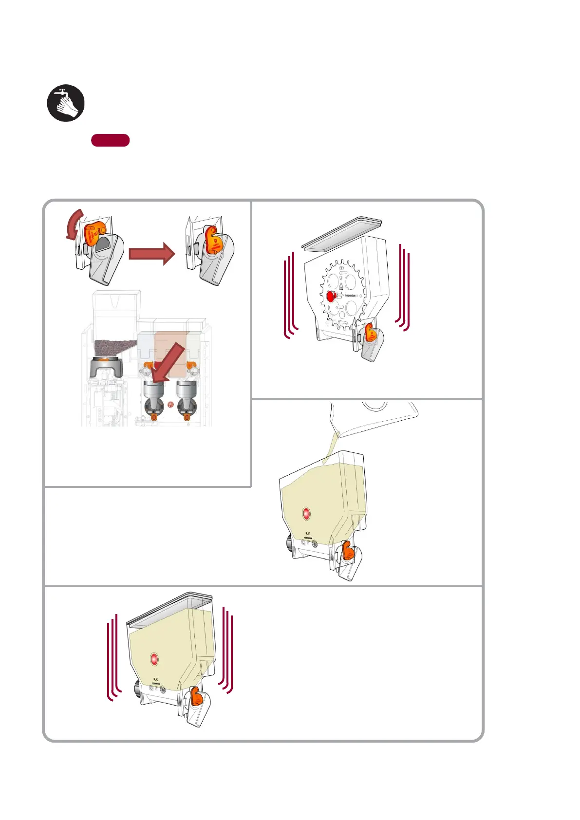 WASH HANDS THOROUGHLY WITH WATER AND SOAP BEFORE HANDLING THE MACHINE AND THE