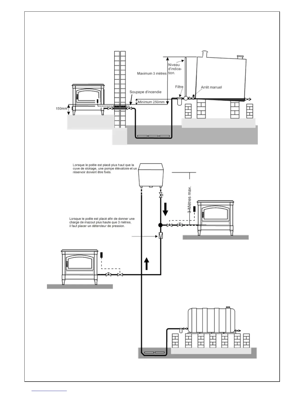 En cas d’adjonction éventuelle d’un réservoir extérieur, le bas de ce réservoir doit être au moins à 25 cm au-