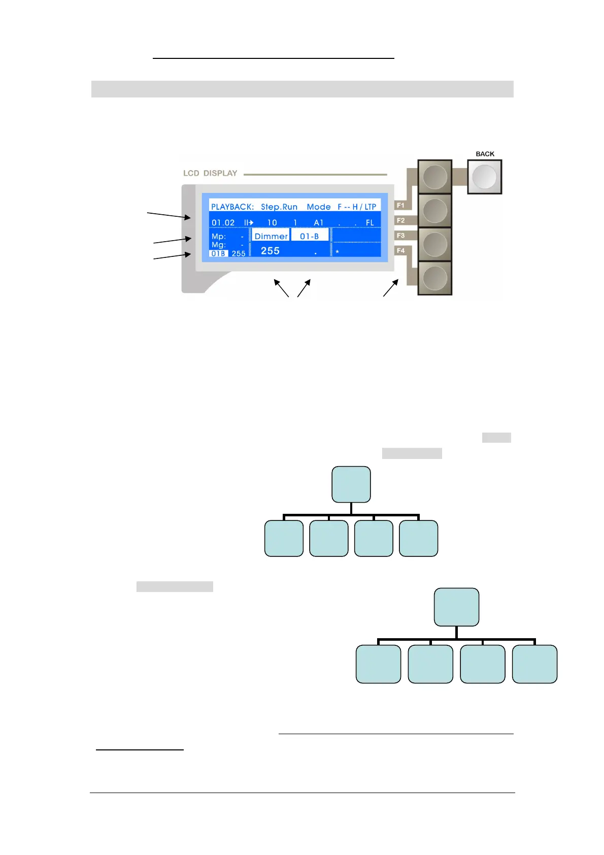 There are four Soft Keys: F1 / F2 / F3 / F4, which correspond to the items in the right side of LCD