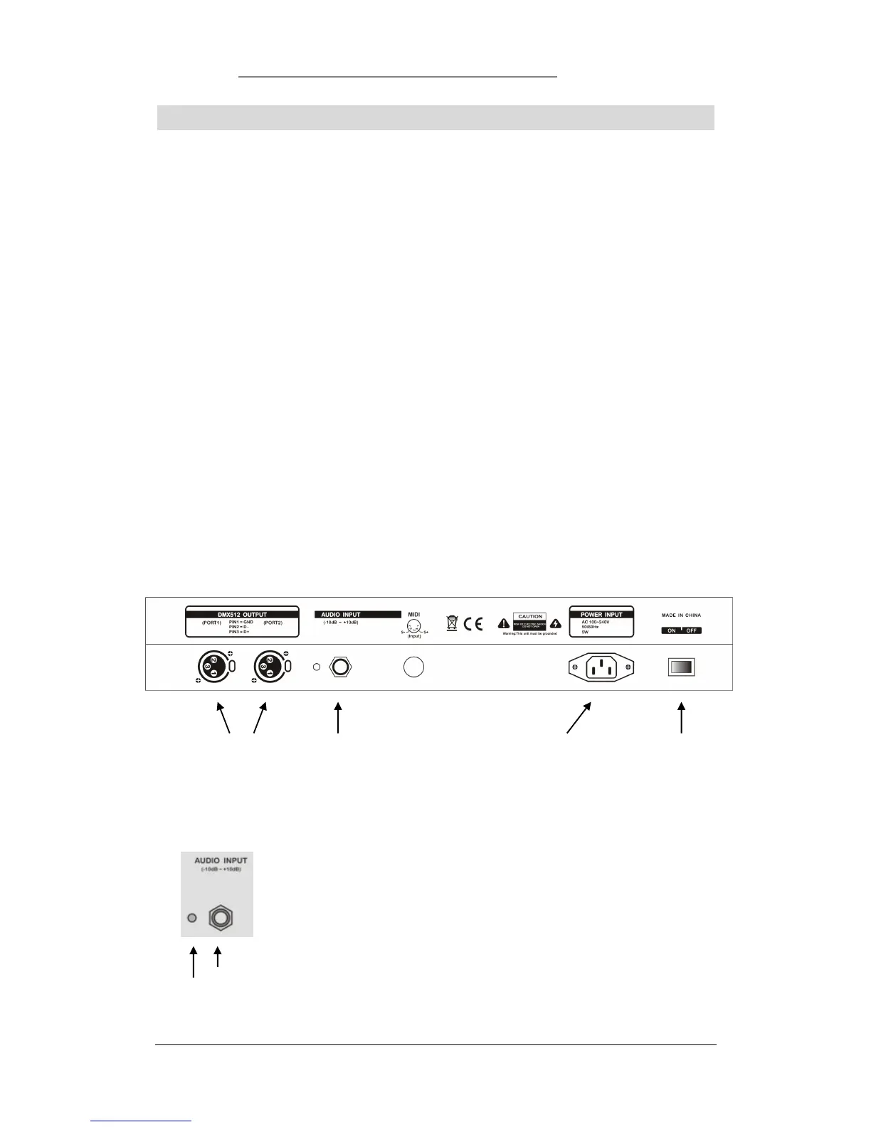 DMX512 Output Audio Input Power Input Power Switch
