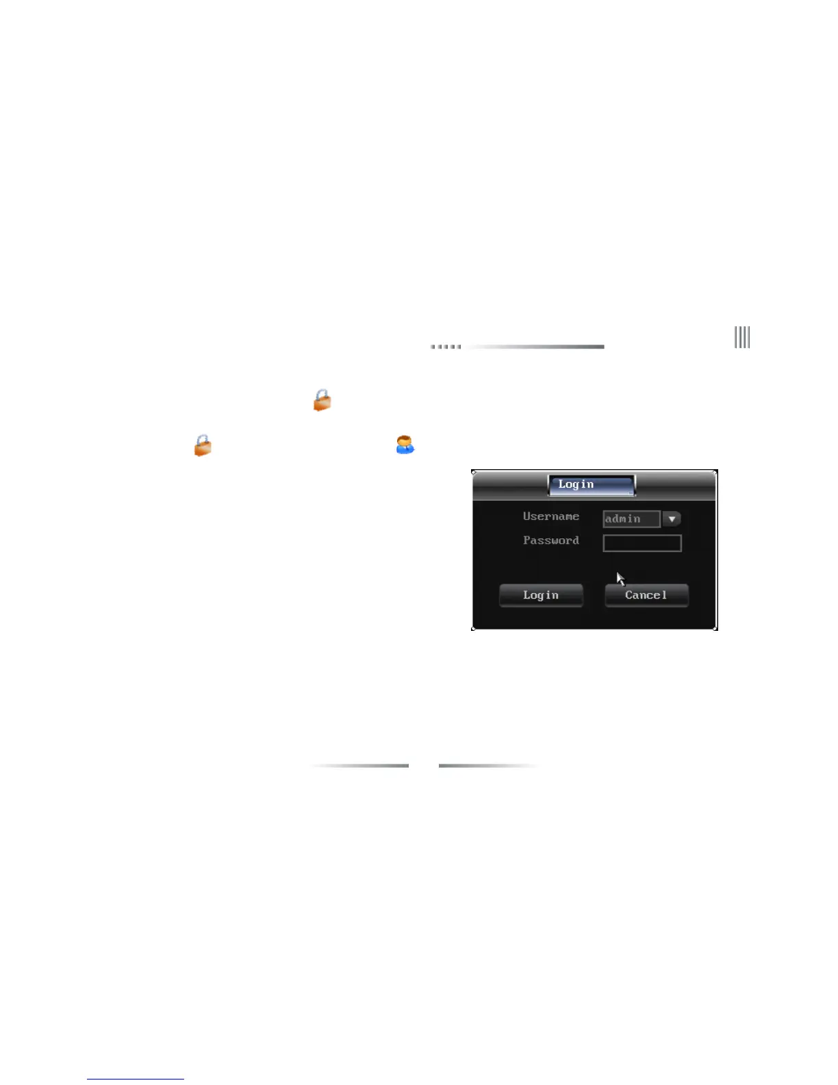 When the system is in the status of locking “ ”, press the “Login/Lock” on the remote controller or right click the mouse, the figure of login