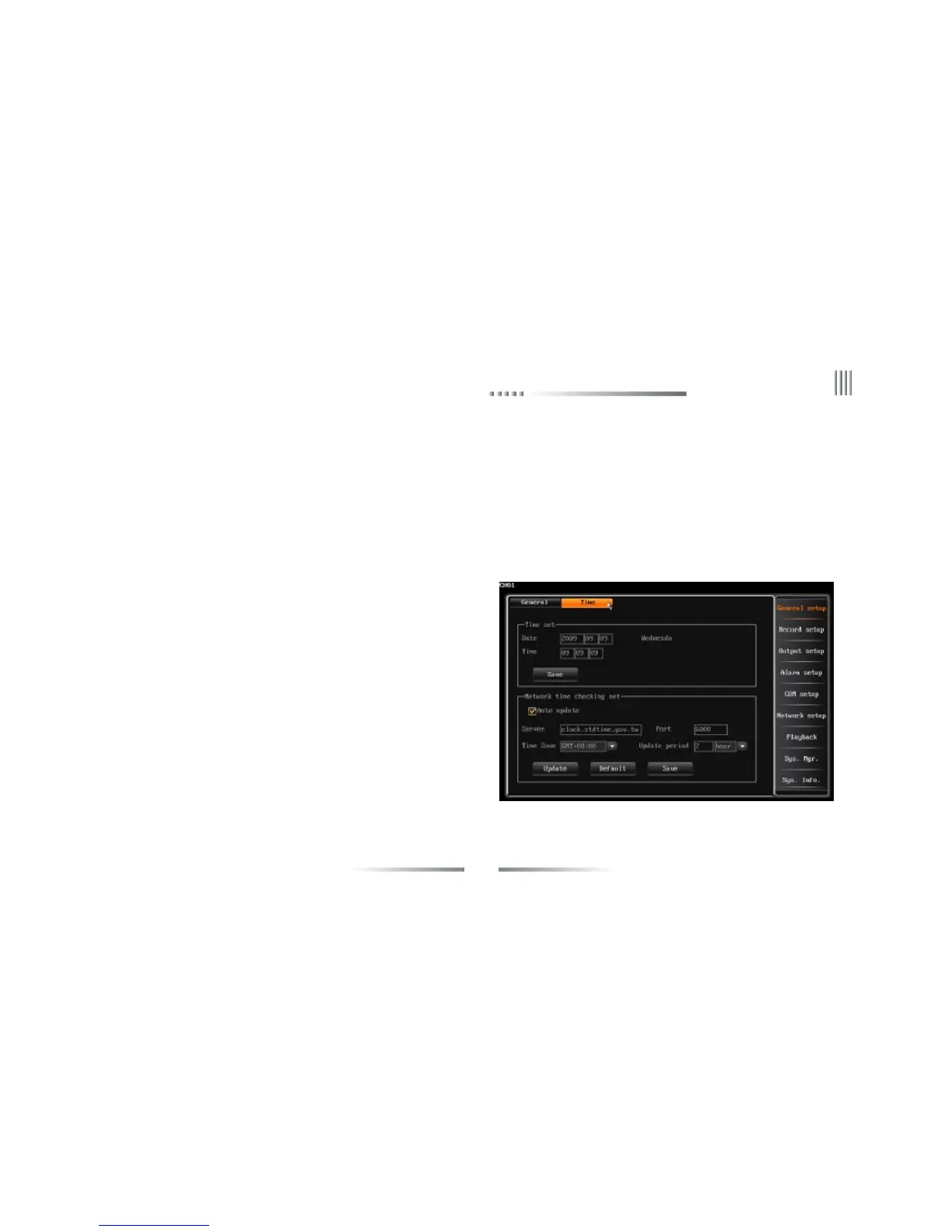 After login, user can through “general setup”-> “time setup” to enter the time setup interface. The fig is as follows: