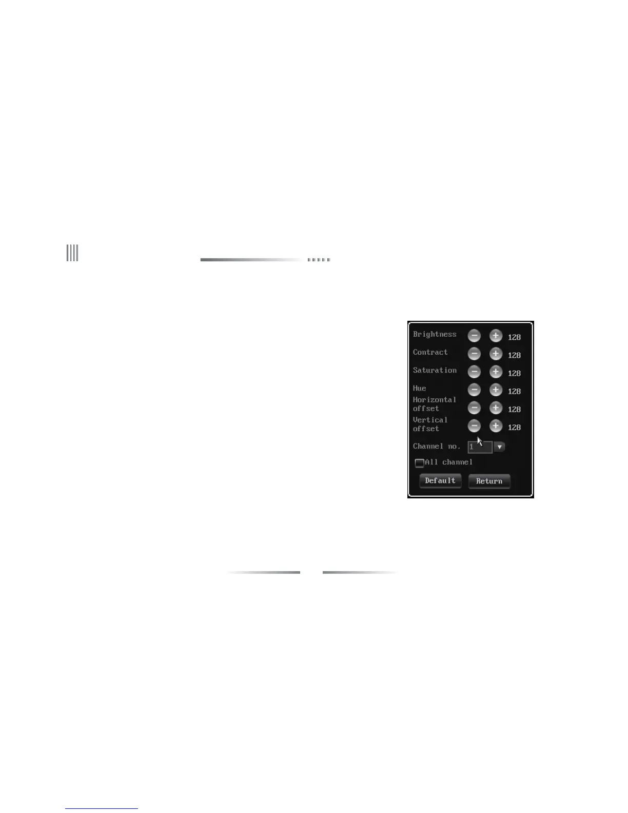 l Channel No.: used to switch channels,user can also setup all channels directly.