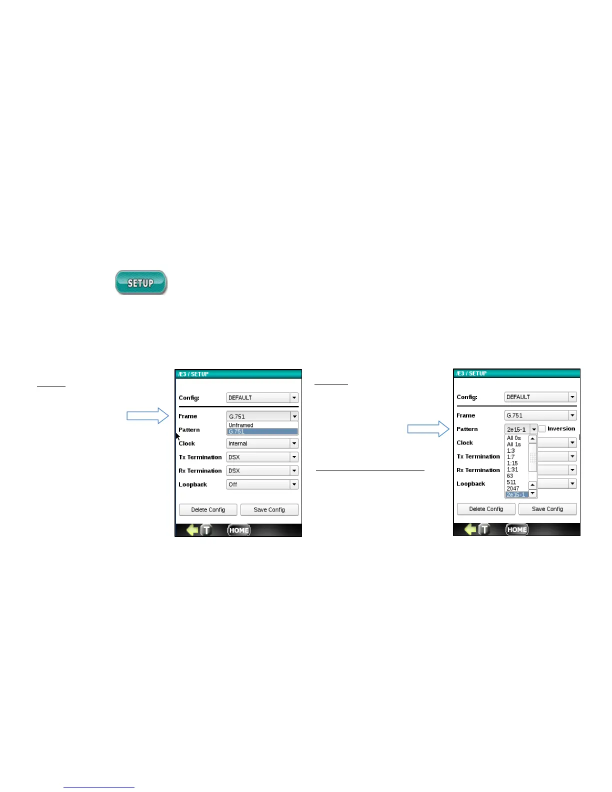 Use the Setup menu to configure the E3 transmitter and receiver parameters.