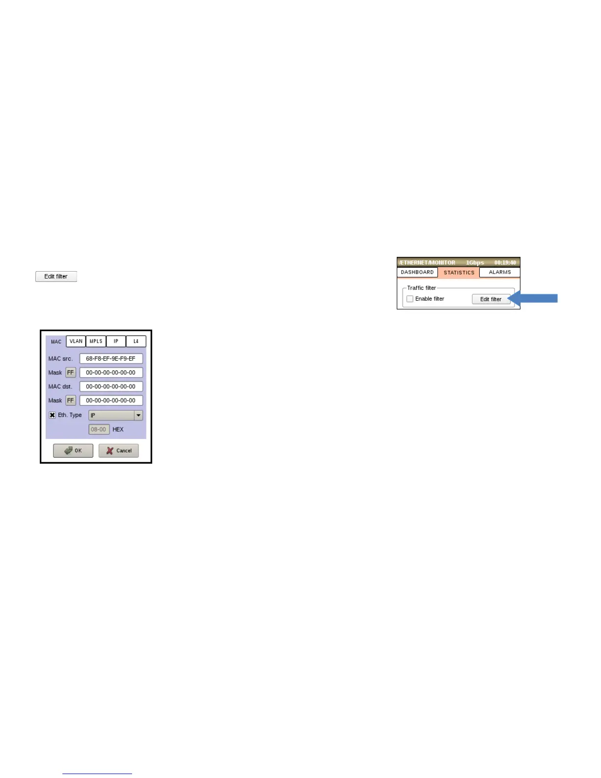 • Eth. Type – configure a filter for Ethernet type (0x0000-0xFFFF). Select item form