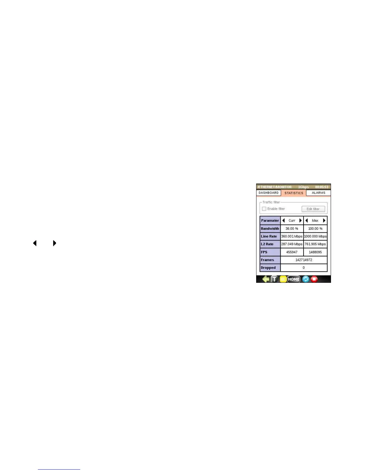 Statistics tab reports information about network traffic. Screen provides following parameters: