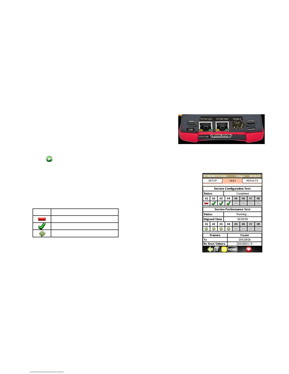 • Press to run the Y.1564 test. The TEST tab containing the current test and services status will be