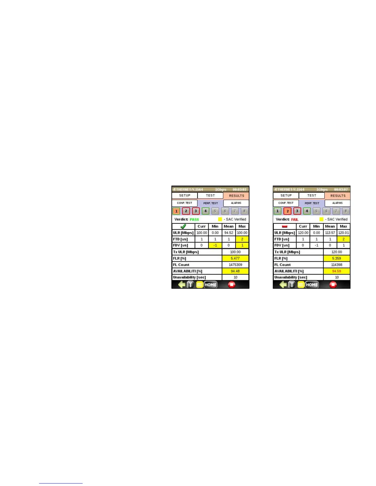 backlight. The Service Performance test pass if all verified parameters are found to be within acceptable limits. If
