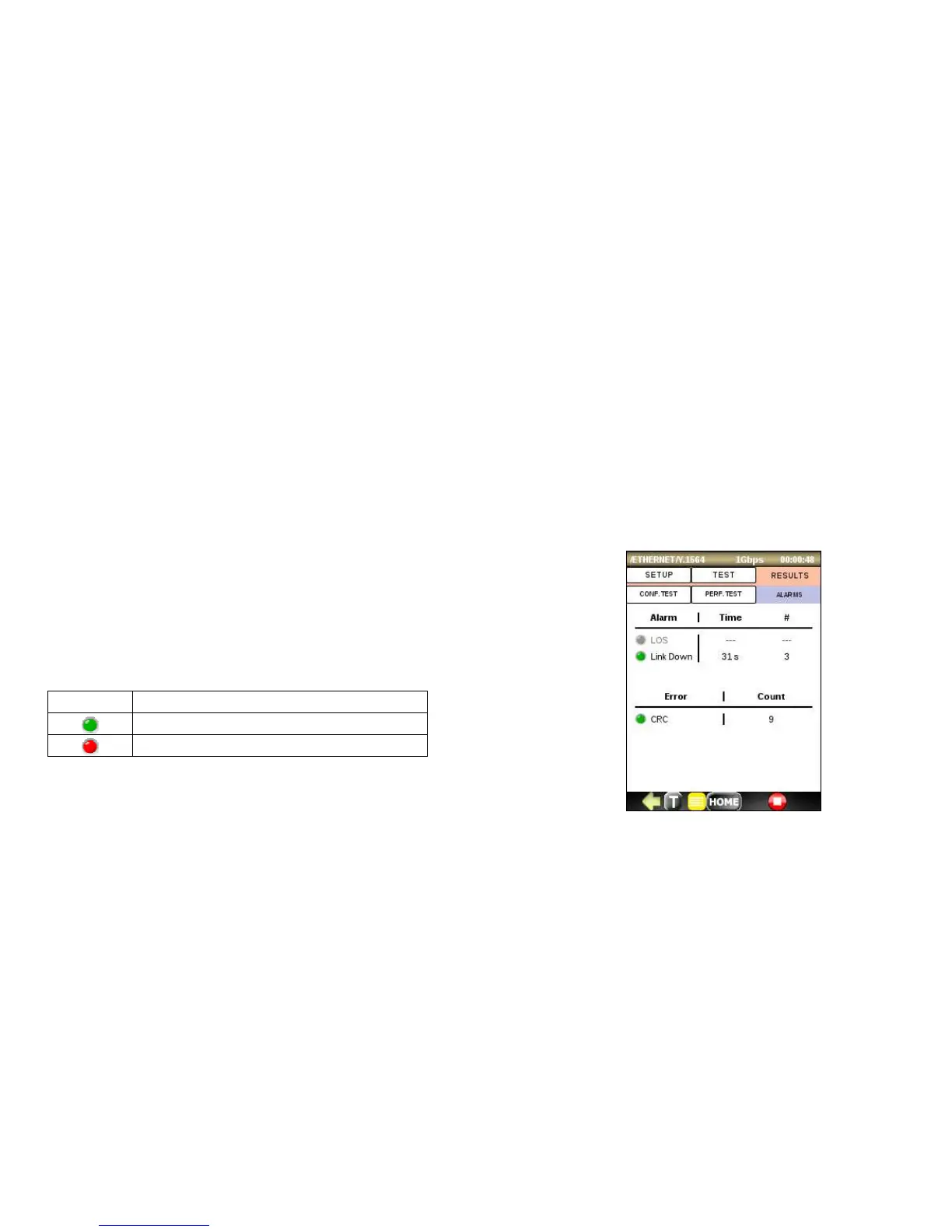 Click on this tab to display detected Alarms. The alarms are displayed with a green or red background as described