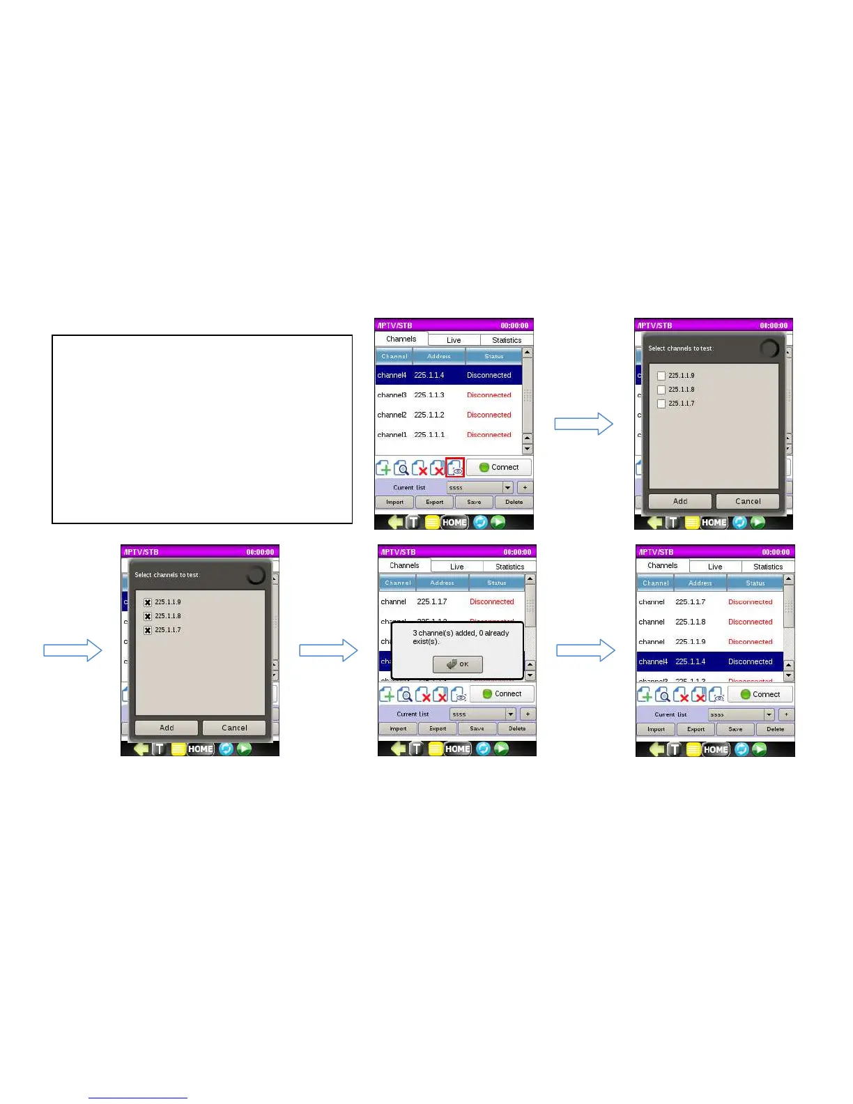 Add button to add channels to list.